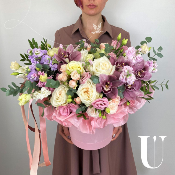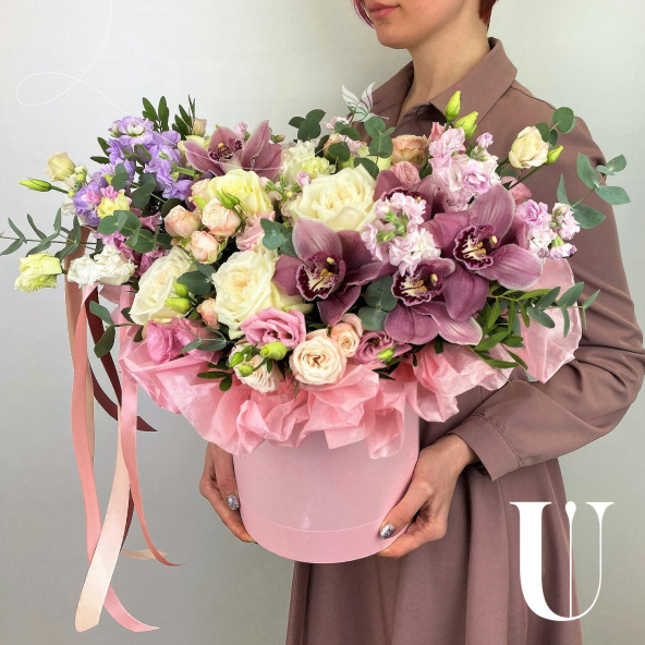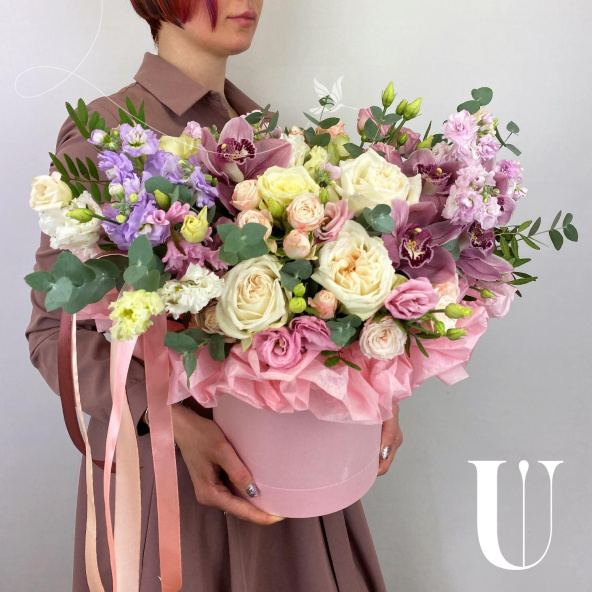 - Шляпная коробка маджестик (U), светло-розовая (выс. 25 см, диам. 20 см) - 1 шт
