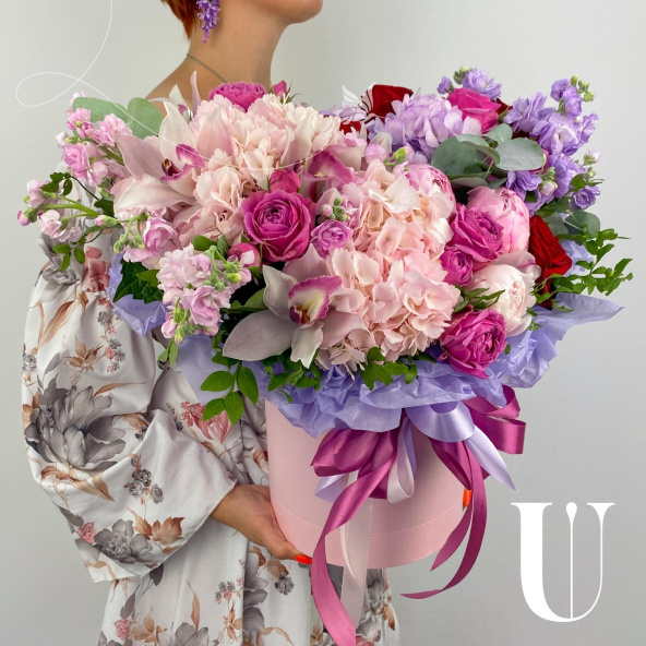 - Шляпная коробка маджестик, розовая (выс. 25 см, диам. 20 см) - 1 шт