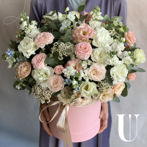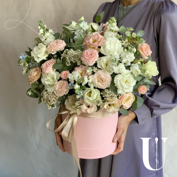 - Шляпная коробка нежно-розовая (выс. 25 см, диам. 20 см) - 1 шт