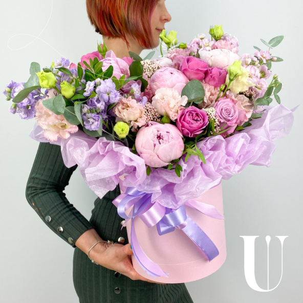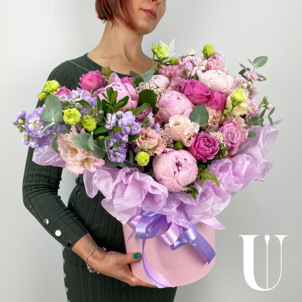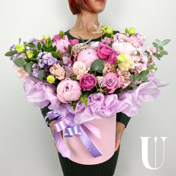 - Шляпная коробка нежно-розовая (выс. 25 см, диам. 20 см) - 1 шт