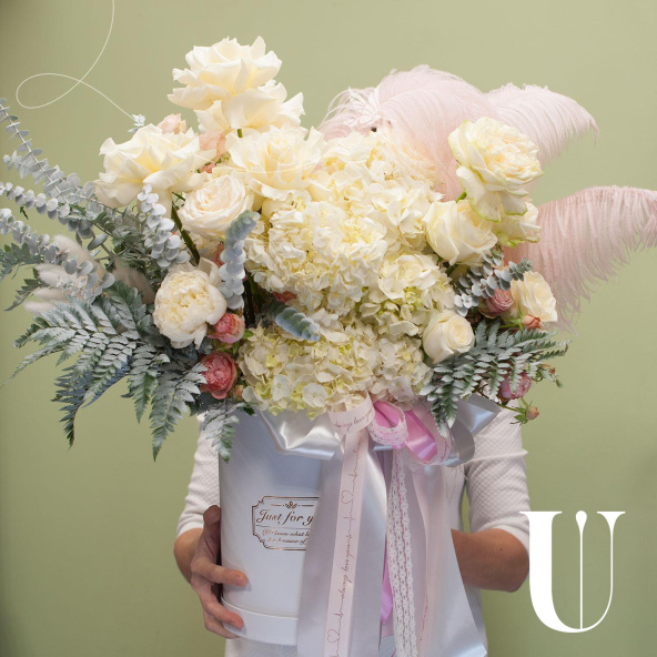 - Шляпная коробка белая (выс. 20 см, диам. 20 см) - 1 шт