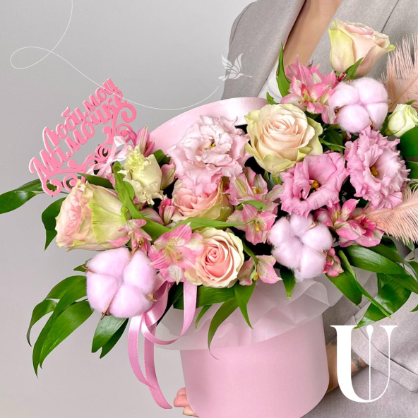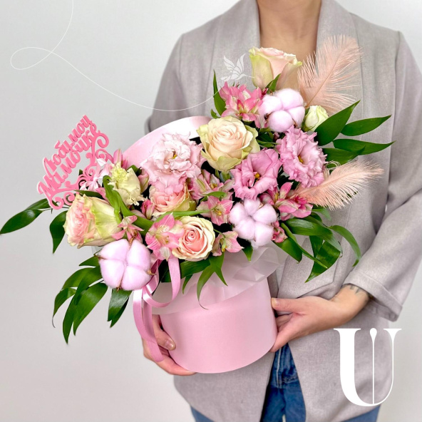 - Шляпная коробка маджестик (U), светло-розовая (выс. 18 см, диам. 16 см) - 1 шт