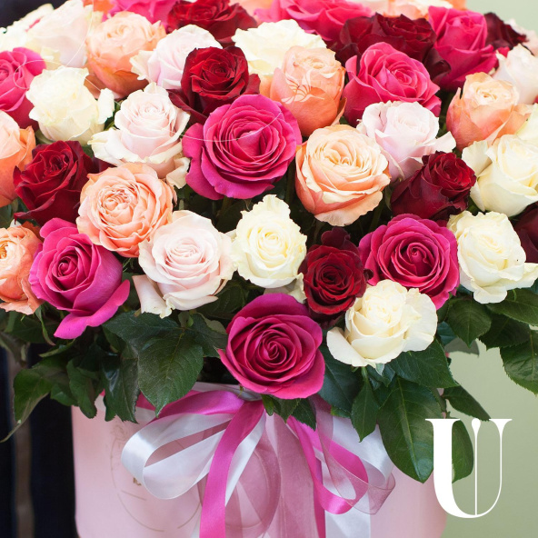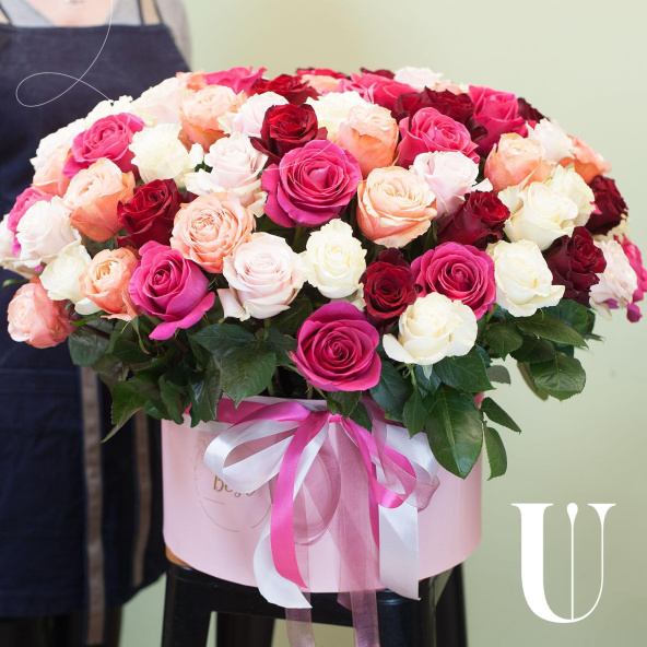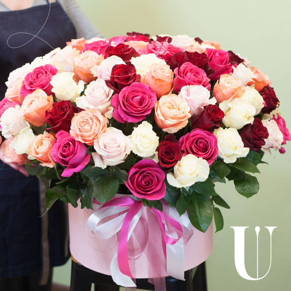В составе композиции - 101 роза в нежных тонах, которые создают атмосферу легкости и романтики. Розы - символ любви и страсти, они прекрасно дополнят любой подарок и сделают его еще более запоминающимся.