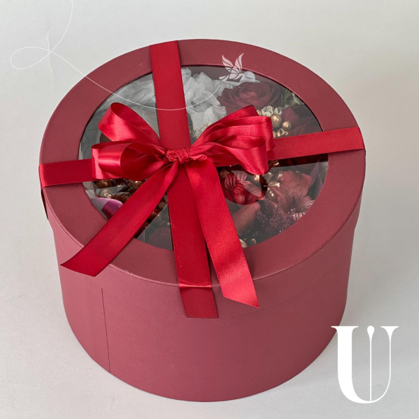 - Коробка шайба с окном (25*15см) Винный - 1 шт