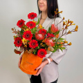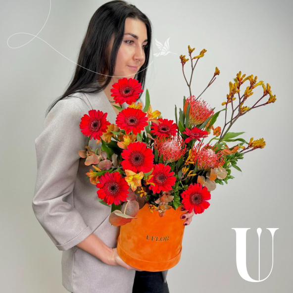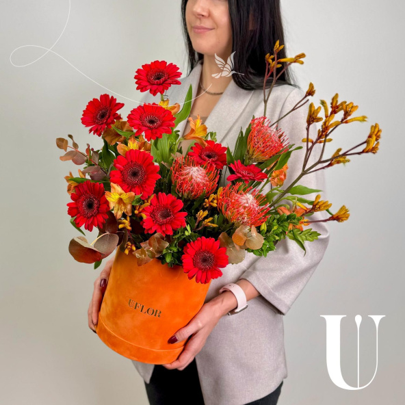 - Шляпная коробка бархатная, оранжевая (выс. 20 см, диам. 17 см) - 1 шт