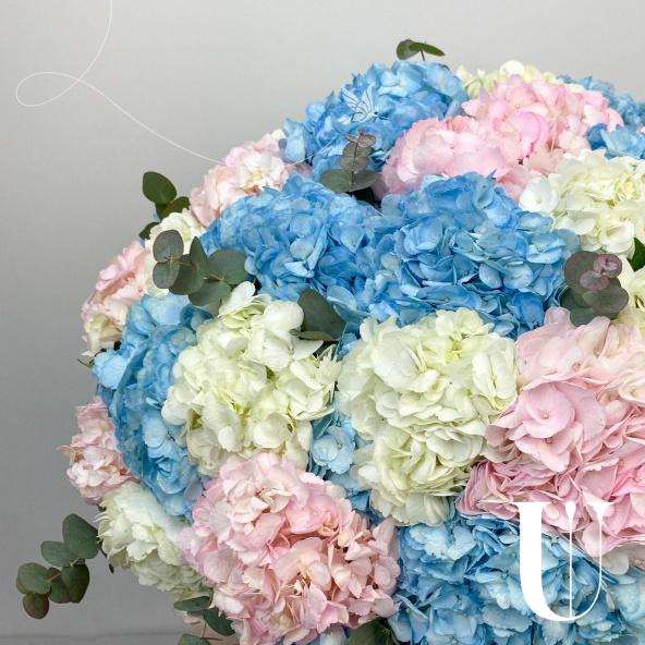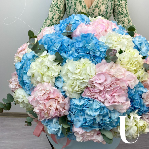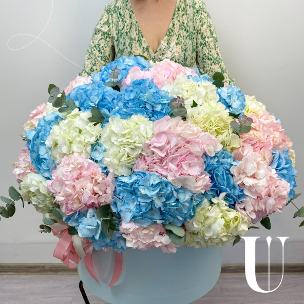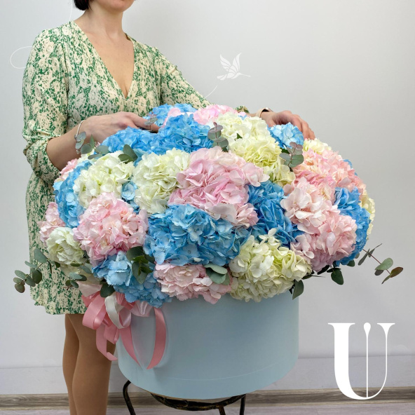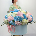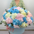 Цветы в шляпной коробке "Огромная коробка гортензий"