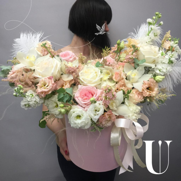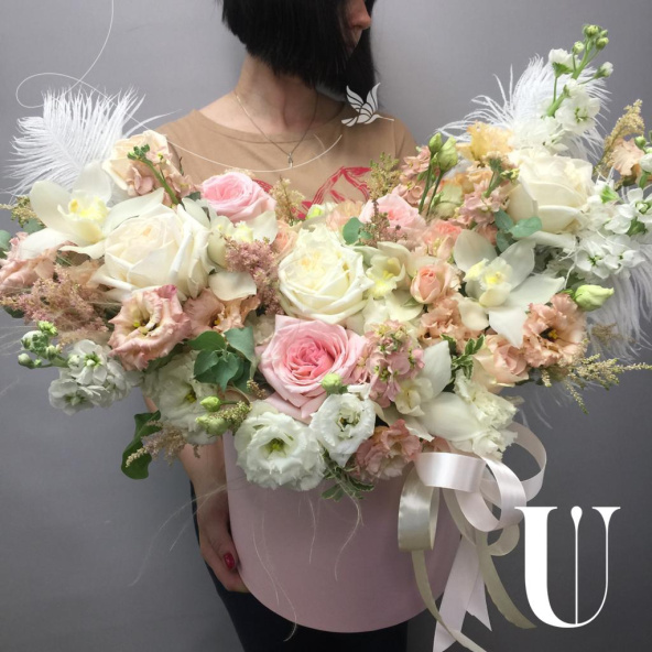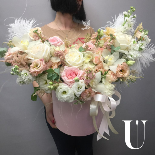 - Роза Вайт Охара, Эквадор, бело-розовая, пионовидная 50 см. - 4 шт
