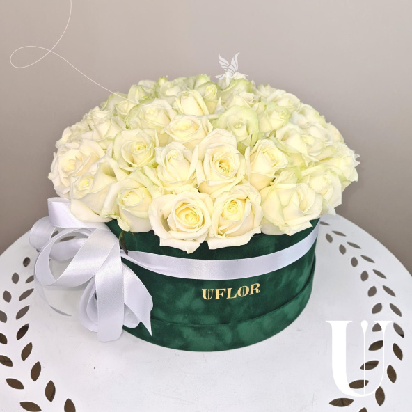 - Шляпная коробка бархатная (U), тёмно-зеленая (выс. 15 см, диам. 30 см) - 1 шт