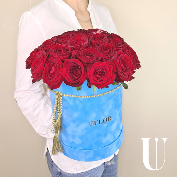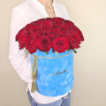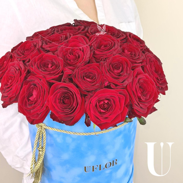 - Шляпная коробка бархатная (U), голубая (выс. 25 см, диам. 20 см) - 1 шт