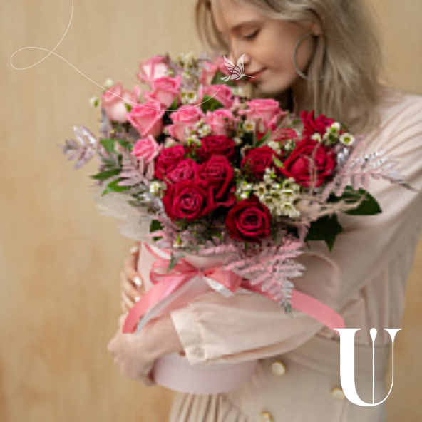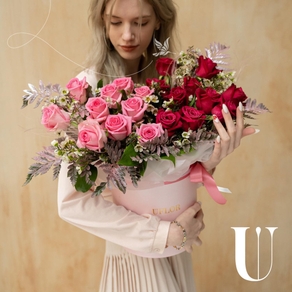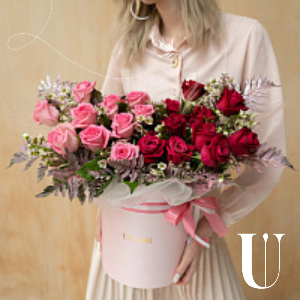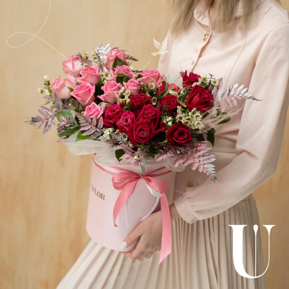 - Шляпная коробка маджестик (U), светло-розовая (выс. 25 см, диам. 20 см) - 1 шт