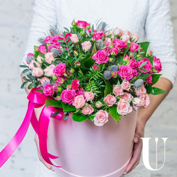 - Шляпная коробка маджестик (U), светло-розовая (выс. 25 см, диам. 20 см) - 1 шт