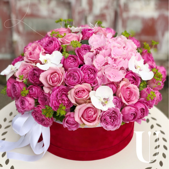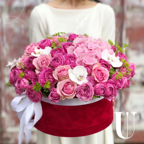 - Шляпная коробка бархатная (U), красная (выс. 15 см, диам. 35 см) - 1 шт