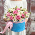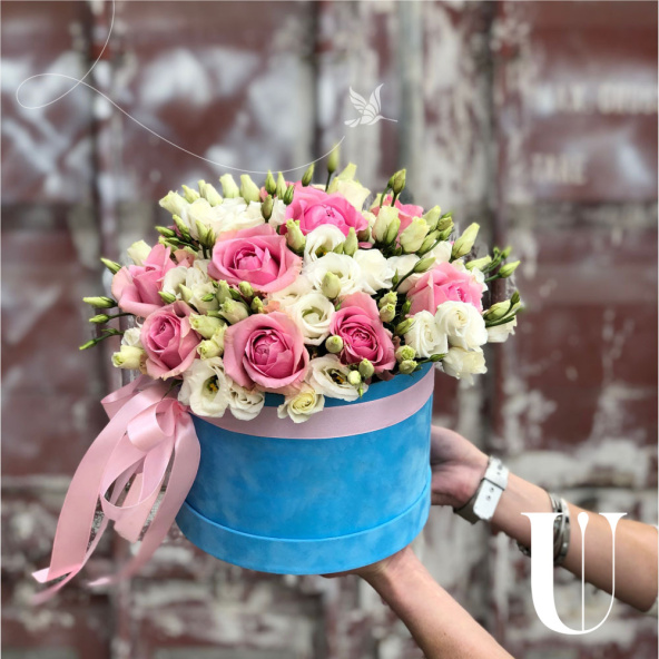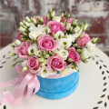 - Шляпная коробка бархатная (U), голубая (выс. 15 см, диам. 20 см) - 1 шт