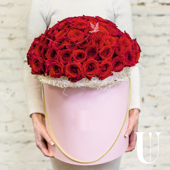 - Шляпная коробка маджестик (U), светло-розовая (выс. 35 см, диам. 30 см) - 1 шт