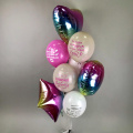 Яркая композиция из гелиевых шаров, которая динамично устремляется вверх, как фонтан из брызг шампанского