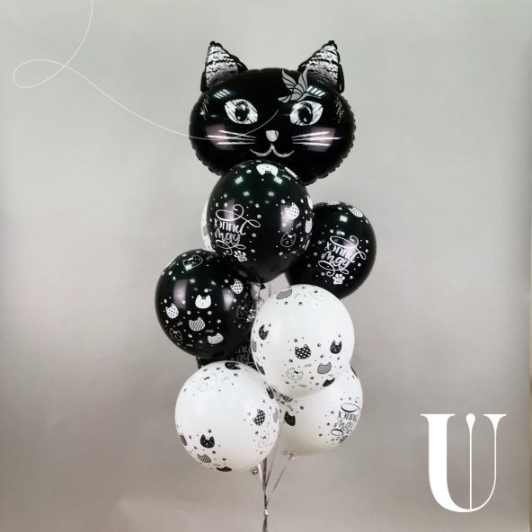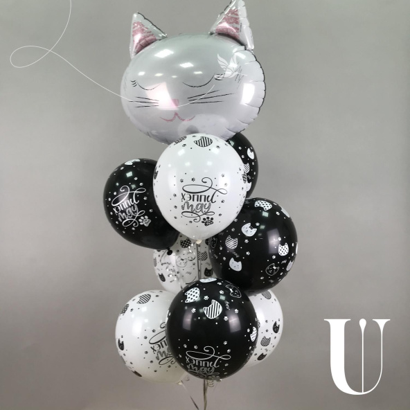 Яркая композиция из гелиевых шаров, которая динамично устремляется вверх, как фонтан из брызг шампанского
