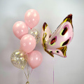 Яркая композиция из гелиевых шаров, которая динамично устремляется вверх, как фонтан из брызг шампанского