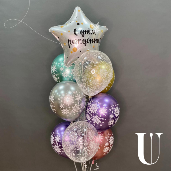 - Латексный шар хром снежинки микс ( 26 см.) - 5 шт