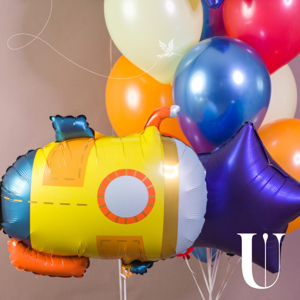 - шар фольгированный "Лодка подводная желтая" 60 см.(арт.60010080739)1 шт,