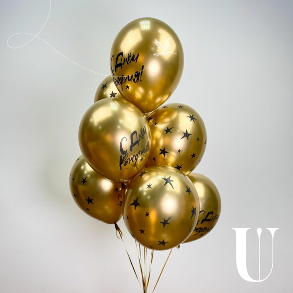 Золотые и прозрачные шары, словно пузырьки игристого, устремляются вверх, создавая настроение лёгкости, радости и безудержного веселья